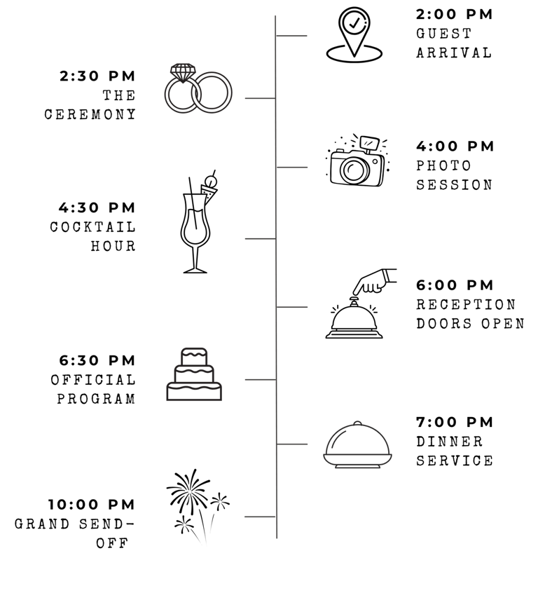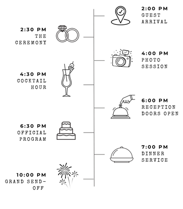 We are so excited to share every moment of this beautiful day with you. Here is an outline of the events so you know what to expect!